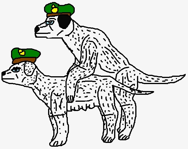 The Alpha Copulatocops are male and female Maximal police officers working for Optimus Primal. Their beast modes are two mating Dalmatian dogs.