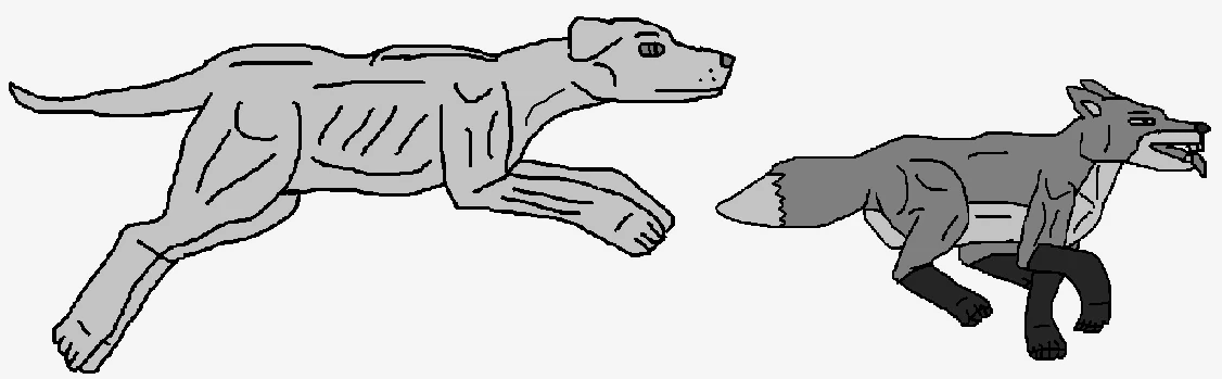 Laelaps Jr. and Teumessia II are the son and daughter of the turned-into-stone Laelaps and the turned-into-stone Teumessian Fox. Their beast modes are two stone statues of a leaping Greyhound chasing after a running Fox.